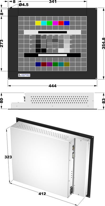 | Maße | 444 x 354,8 x 83 mm | |