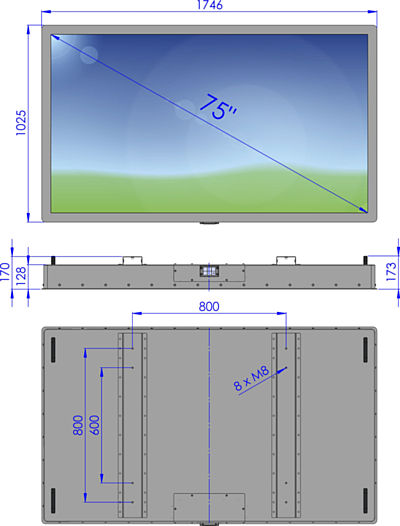 Industrielles Datensichtgerät mit 190 cm Bildschirmdiagonale für den Indoor-/ und Outdoor-Bereich.