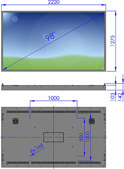 Sehr großes Datensichtgerät im robusten Metallgehäuse für industrielle Anwendungen